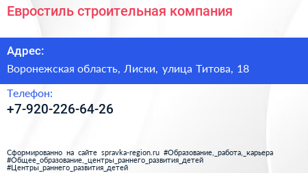 Евростиль, строительная компания по адресу Воронежская область, Лиски, улица Титова, 18 в дальнейшем Организация, размещена в следующих категориях: