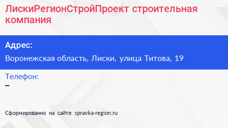 ЛискиРегионСтройПроект, строительная компания по адресу Воронежская область, Лиски, улица Титова, 19 в дальнейшем Организация, размещена в следующих категориях: