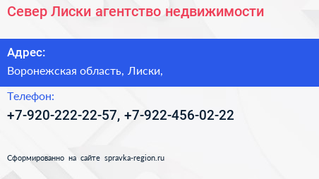 Север-Лиски, агентство недвижимости по адресу Воронежская область, Лиски, в дальнейшем Организация, размещена в следующих категориях: