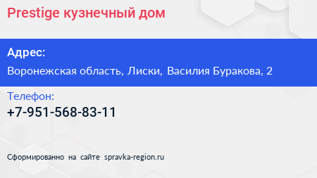 Prestige, кузнечный дом по адресу Воронежская область, Лиски, Василия Буракова, 2 в дальнейшем Организация, размещена в следующих категориях: