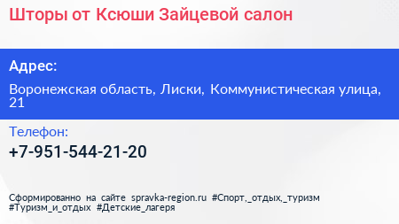 Шторы от Ксюши Зайцевой, салон по адресу Воронежская область, Лиски, Коммунистическая улица, 21 в дальнейшем Организация, размещена в следующих категориях: