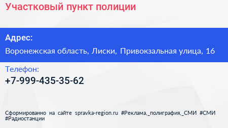 Участковый пункт полиции по адресу Воронежская область, Лиски, Привокзальная улица, 16 в дальнейшем Организация, размещена в следующих категориях: