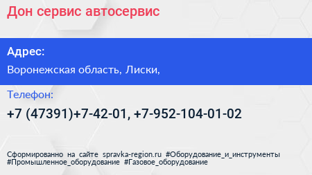 Дон-сервис, автосервис по адресу Воронежская область, Лиски, в дальнейшем Организация, размещена в следующих категориях: