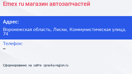 Emex.ru, магазин автозапчастей по адресу Воронежская область, Лиски, Коммунистическая улица, 74 в дальнейшем Организация, размещена в следующих категориях: