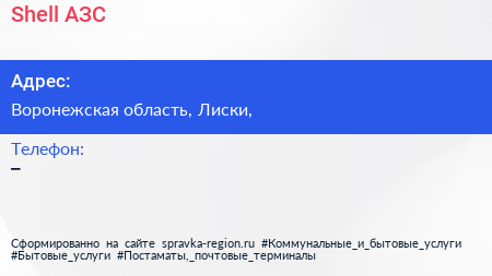 Shell, АЗС по адресу Воронежская область, Лиски, в дальнейшем Организация, размещена в следующих категориях: