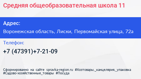 Средняя общеобразовательная школа №11 по адресу Воронежская область, Лиски, Первомайская улица, 72а в дальнейшем Организация, размещена в следующих категориях: