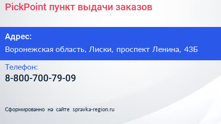 PickPoint, пункт выдачи заказов по адресу Воронежская область, Лиски, проспект Ленина, 43Б в дальнейшем Организация, размещена в следующих категориях: