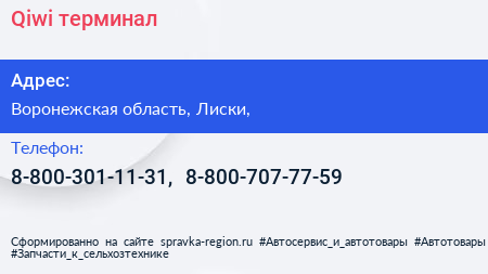 Qiwi, терминал по адресу Воронежская область, Лиски, в дальнейшем Организация, размещена в следующих категориях: