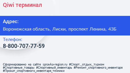Qiwi, терминал по адресу Воронежская область, Лиски, проспект Ленина, 43Б в дальнейшем Организация, размещена в следующих категориях: