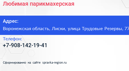 Любимая, парикмахерская по адресу Воронежская область, Лиски, улица Трудовые Резервы, 77 в дальнейшем Организация, размещена в следующих категориях:
