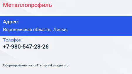 Металлопрофиль по адресу Воронежская область, Лиски, в дальнейшем Организация, размещена в следующих категориях: