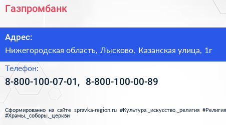 Газпромбанк по адресу Нижегородская область, Лысково, Казанская улица, 1г в дальнейшем Организация, размещена в следующих категориях: