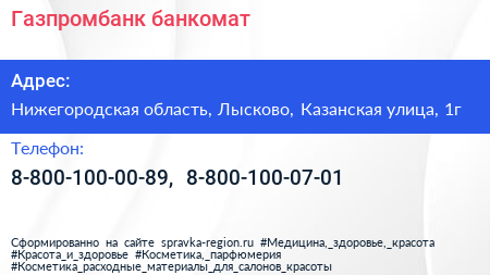 Газпромбанк, банкомат по адресу Нижегородская область, Лысково, Казанская улица, 1г в дальнейшем Организация, размещена в следующих категориях: