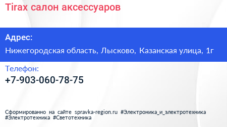 Tirax, салон аксессуаров по адресу Нижегородская область, Лысково, Казанская улица, 1г в дальнейшем Организация, размещена в следующих категориях: