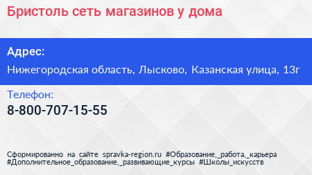 Бристоль, сеть магазинов у дома по адресу Нижегородская область, Лысково, Казанская улица, 13г в дальнейшем Организация, размещена в следующих категориях: