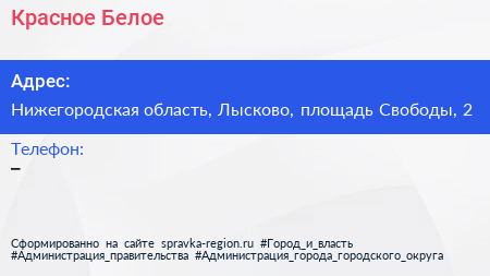 Красное & Белое по адресу Нижегородская область, Лысково, площадь Свободы, 2 в дальнейшем Организация, размещена в следующих категориях: