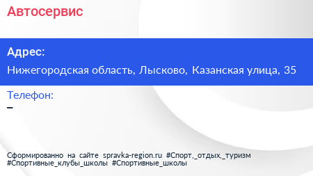 Автосервис по адресу Нижегородская область, Лысково, Казанская улица, 35 в дальнейшем Организация, размещена в следующих категориях: