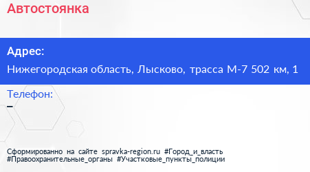 Автостоянка по адресу Нижегородская область, Лысково, трасса М-7 502 км, 1 в дальнейшем Организация, размещена в следующих категориях:
