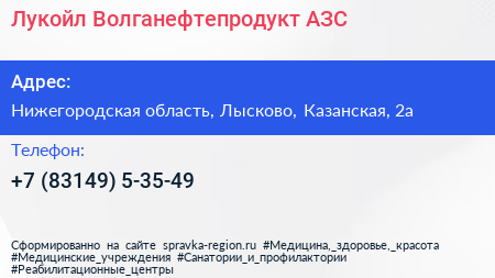 Лукойл-Волганефтепродукт, АЗС по адресу Нижегородская область, Лысково, Казанская, 2а в дальнейшем Организация, размещена в следующих категориях: