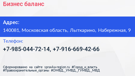 Бизнес баланс по адресу 140081, Московская область, Лыткарино, Набережная, 9 в дальнейшем Организация, размещена в следующих категориях: