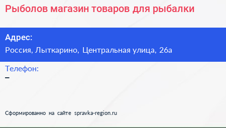 Рыболов, магазин товаров для рыбалки по адресу Володарского - Константиново, Большая Володарка, посёлок Володарского, Ленинский городской округ, Московская область, Центральный федеральный округ, 142713, Россия в дальнейшем Организация, размещена в следующих категориях: