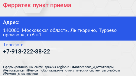 Ферратек, пункт приема по адресу 140080, Московская область, Лыткарино, Тураево промзона, ст6 к1 в дальнейшем Организация, размещена в следующих категориях: