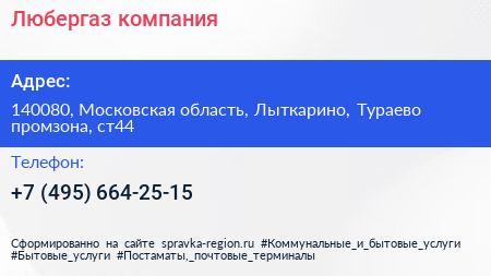 Любергаз, компания по адресу 140080, Московская область, Лыткарино, Тураево промзона, ст44 в дальнейшем Организация, размещена в следующих категориях: