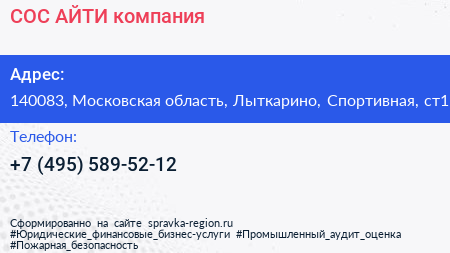 СОС-АЙТИ, компания по адресу 140083, Московская область, Лыткарино, Спортивная, ст1 в дальнейшем Организация, размещена в следующих категориях:
