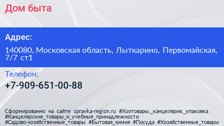Дом быта по адресу 140080, Московская область, Лыткарино, Первомайская, 7/7 ст1 в дальнейшем Организация, размещена в следующих категориях: