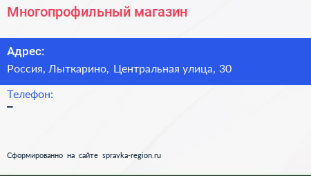 Многопрофильный магазин по адресу ТФ "Возрождение", 30А, Центральная улица, Большая Володарка, посёлок Володарского, Ленинский городской округ, Московская область, Центральный федеральный округ, 142713, Россия в дальнейшем Организация, размещена в следующих категориях: