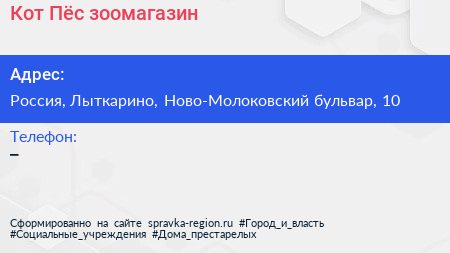 Кот & Пёс, зоомагазин по адресу 10, Ново-Молоковский бульвар, Жилой комплекс "Ново-Молоково", Молоково, Ленинский городской округ, Московская область, Центральный федеральный округ, 142714, Россия в дальнейшем Организация, размещена в следующих категориях: