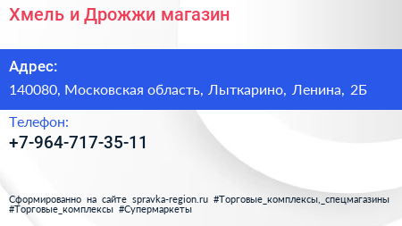 Хмель и Дрожжи, магазин по адресу 140080, Московская область, Лыткарино, Ленина, 2Б в дальнейшем Организация, размещена в следующих категориях: