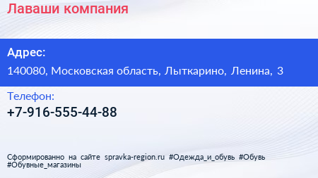 Лаваши, компания по адресу 140080, Московская область, Лыткарино, Ленина, 3 в дальнейшем Организация, размещена в следующих категориях: