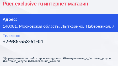 Puer-exclusive.ru, интернет-магазин по адресу 140081, Московская область, Лыткарино, Набережная, 7 в дальнейшем Организация, размещена в следующих категориях: