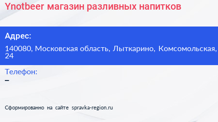 Ynotbeer, магазин разливных напитков по адресу 140080, Московская область, Лыткарино, Комсомольская, 24 в дальнейшем Организация, размещена в следующих категориях: