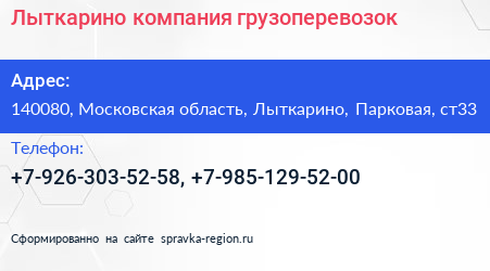 Лыткарино, компания грузоперевозок по адресу 140080, Московская область, Лыткарино, Парковая, ст33 в дальнейшем Организация, размещена в следующих категориях: