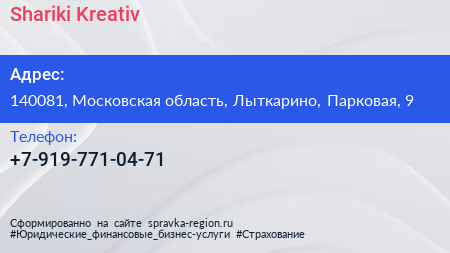 Shariki Kreativ по адресу 140081, Московская область, Лыткарино, Парковая, 9 в дальнейшем Организация, размещена в следующих категориях: