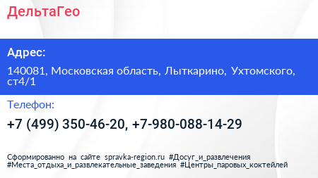 ДельтаГео по адресу 140081, Московская область, Лыткарино, Ухтомского, ст4/1 в дальнейшем Организация, размещена в следующих категориях:
