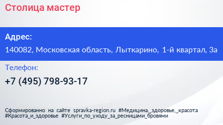 Столица мастер по адресу 140082, Московская область, Лыткарино, 1-й квартал, 3а в дальнейшем Организация, размещена в следующих категориях: