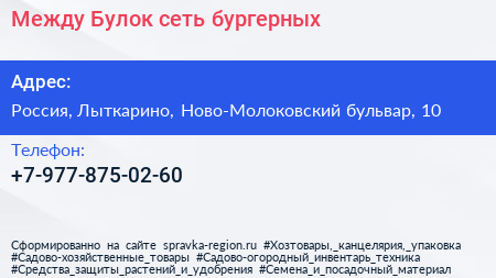 Между Булок, сеть бургерных по адресу 10, Ново-Молоковский бульвар, Жилой комплекс "Ново-Молоково", Молоково, Ленинский городской округ, Московская область, Центральный федеральный округ, 142714, Россия в дальнейшем Организация, размещена в следующих категориях: