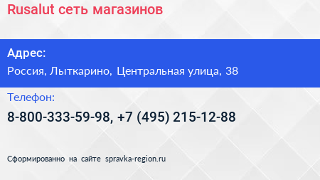 Rusalut, сеть магазинов по адресу 33, Центральная улица, Большая Володарка, посёлок Володарского, Ленинский городской округ, Московская область, Центральный федеральный округ, 142713, Россия в дальнейшем Организация, размещена в следующих категориях: