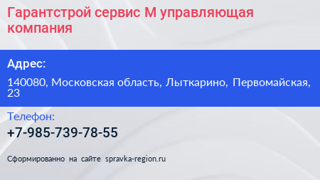 Гарантстрой-сервис+М, управляющая компания по адресу 140080, Московская область, Лыткарино, Первомайская, 23 в дальнейшем Организация, размещена в следующих категориях: