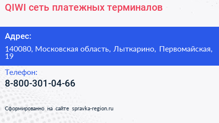 QIWI, сеть платежных терминалов по адресу 140080, Московская область, Лыткарино, Первомайская, 19 в дальнейшем Организация, размещена в следующих категориях: