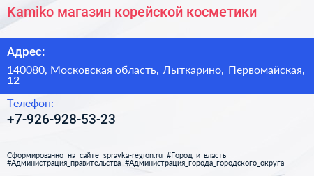 Kamiko, магазин корейской косметики по адресу 140080, Московская область, Лыткарино, Первомайская, 12 в дальнейшем Организация, размещена в следующих категориях: