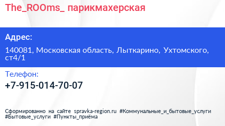 The_ROOms_, парикмахерская по адресу 140081, Московская область, Лыткарино, Ухтомского, ст4/1 в дальнейшем Организация, размещена в следующих категориях: