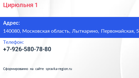 Цирюльня №1 по адресу 140080, Московская область, Лыткарино, Первомайская, 5 в дальнейшем Организация, размещена в следующих категориях: