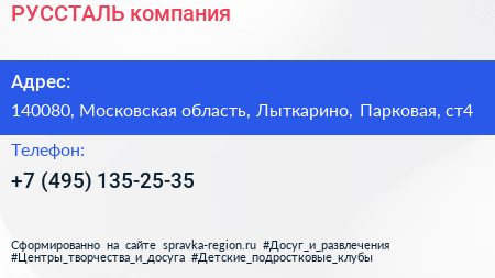 РУССТАЛЬ, компания по адресу 140080, Московская область, Лыткарино, Парковая, ст4 в дальнейшем Организация, размещена в следующих категориях:
