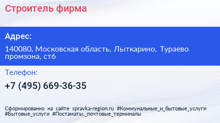 Строитель, фирма по адресу 140080, Московская область, Лыткарино, Тураево промзона, ст6 в дальнейшем Организация, размещена в следующих категориях: