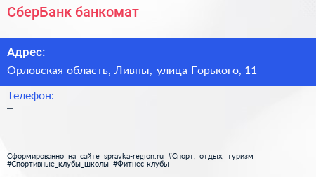 СберБанк, банкомат по адресу Орловская область, Ливны, улица Горького, 11 в дальнейшем Организация, размещена в следующих категориях: