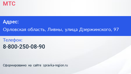 МТС по адресу Орловская область, Ливны, улица Дзержинского, 97 в дальнейшем Организация, размещена в следующих категориях: